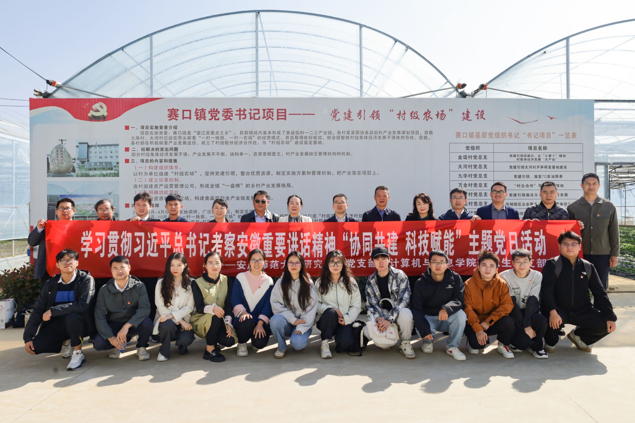 10月24日,研究生院党支部及计算机与信息学院研究生省级样板党支部主题党课暨“科技小院”揭牌仪式活动在望江县赛口镇大河村举行。校党委常委、副校长吴琼,望江县副县长杨震元出席活动,金沙官网研究生院全体党员,计算机与信息学院党政领导班子成员、研究生导师代表及研究生党员,望江县农业农村局及赛口镇主要负责人,安徽易刚信息技术有限公司负责人等40余人参加活动。