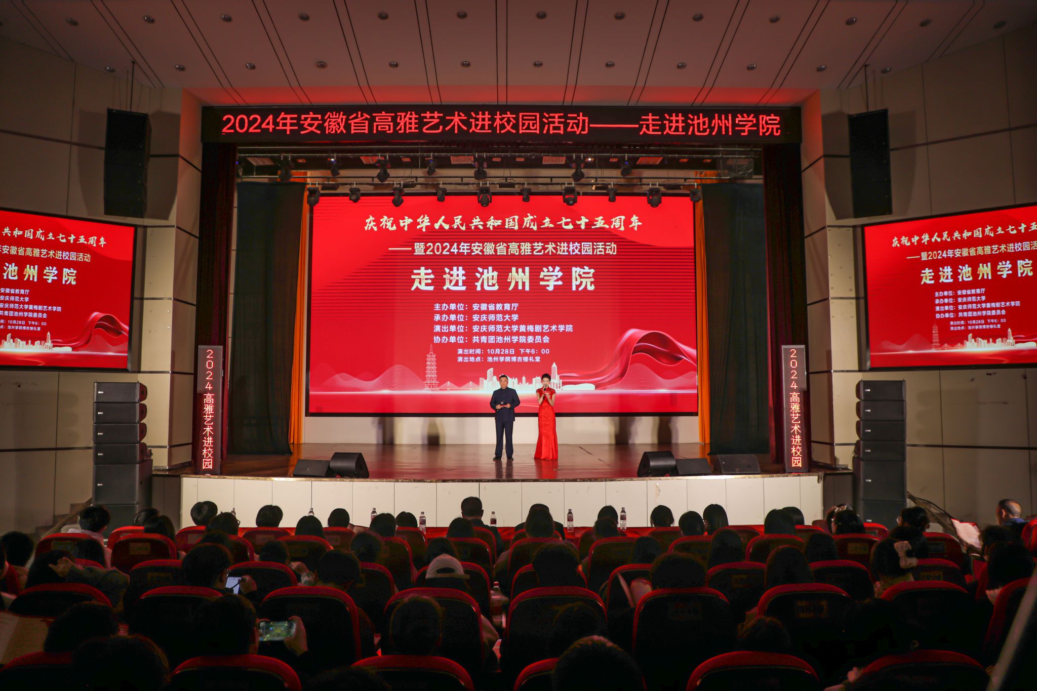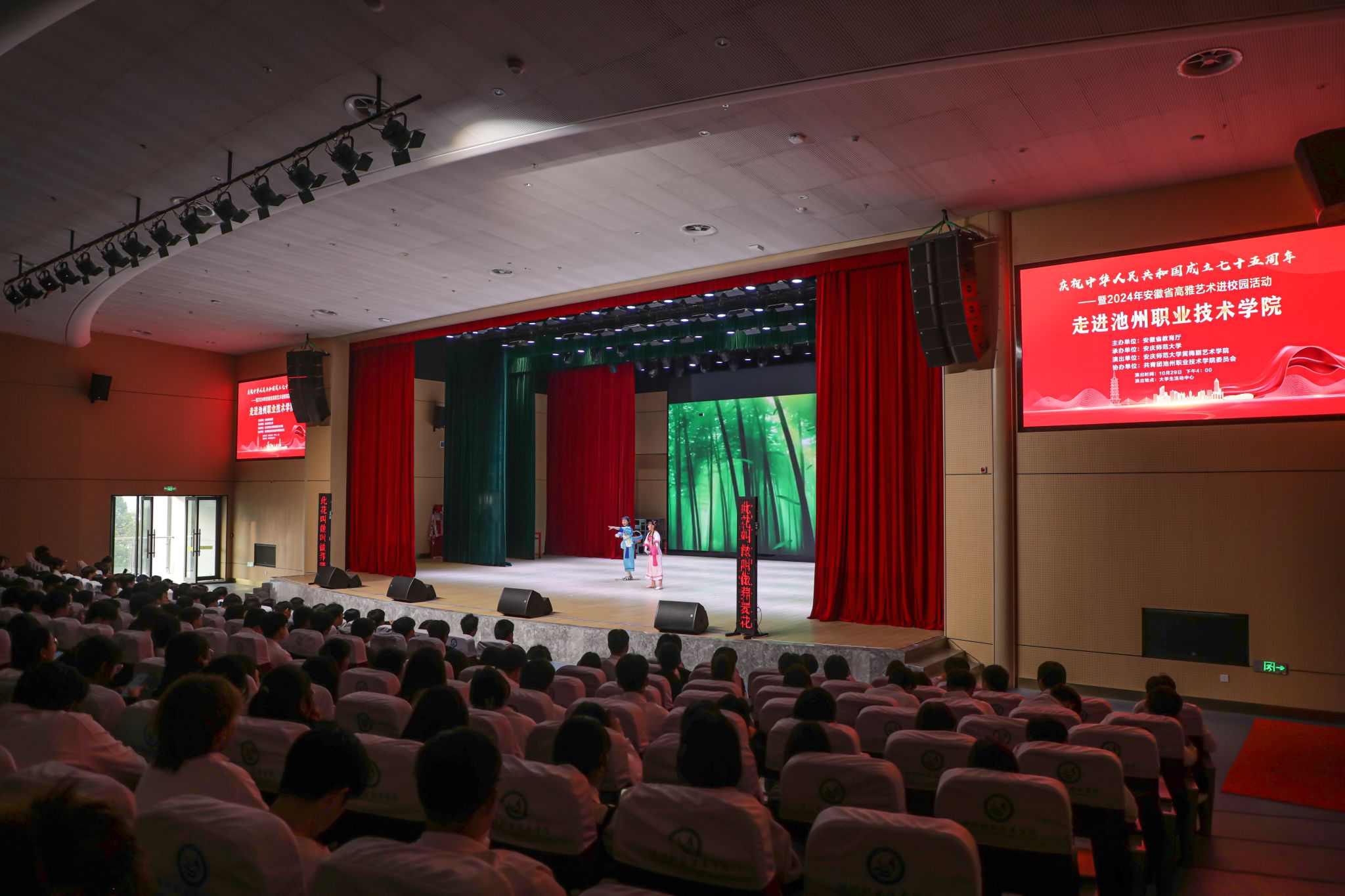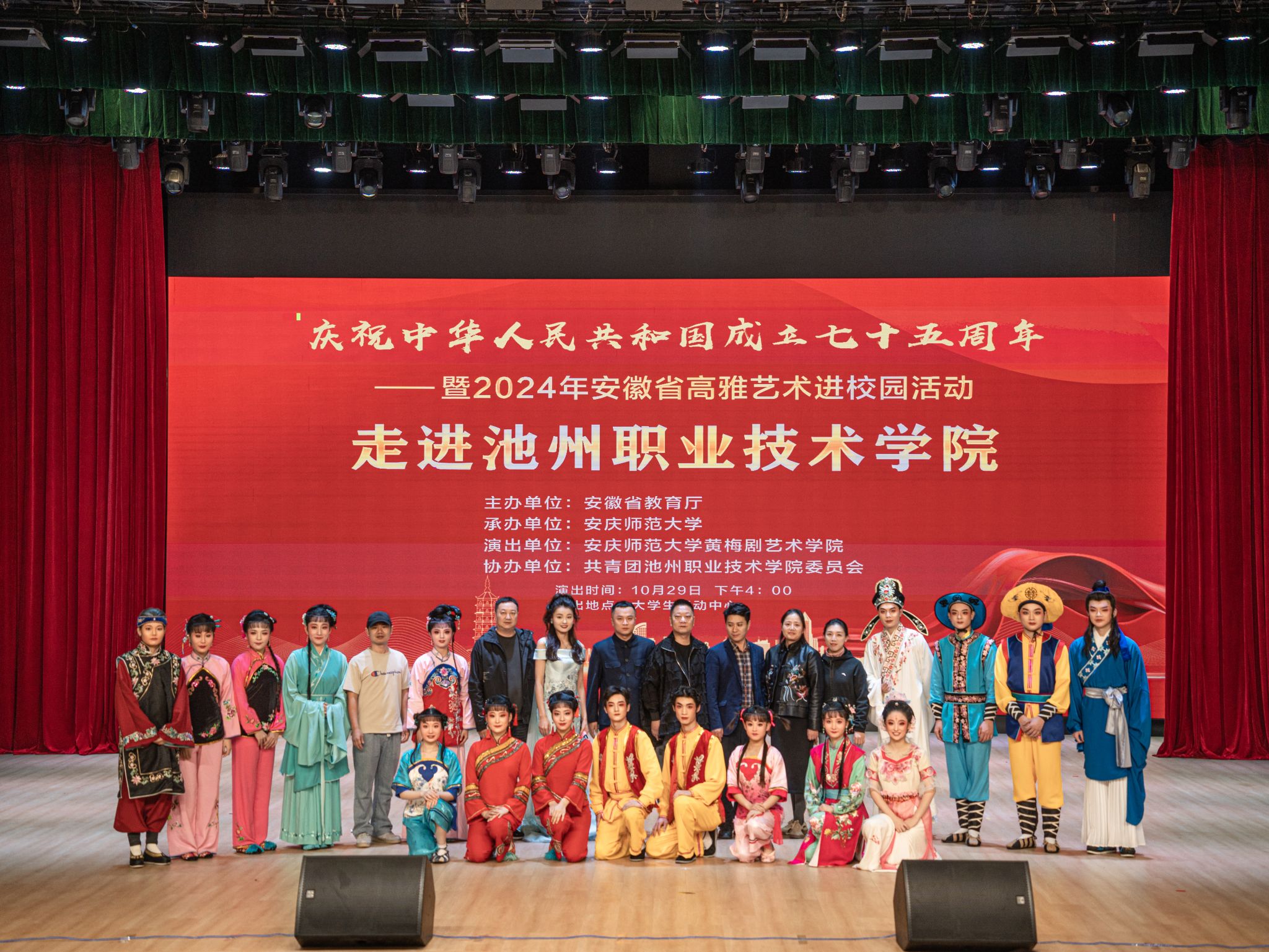 黄梅小戏《打猪草》《天女散花》,黄梅折子戏《天仙配·满工》《推车赶会》,黄梅戏经典对唱《海滩别》《夫妻双双把家还》……一出出经典的黄梅戏表演呈现在高校观众眼前。10月28日至10月29日,金沙官网大学生黄梅戏艺术团赴中池州学院、池州职业技术学院两所高校开展庆祝中华人民共和国成立七十五周年暨2024年安徽省高雅艺术进校园活动。