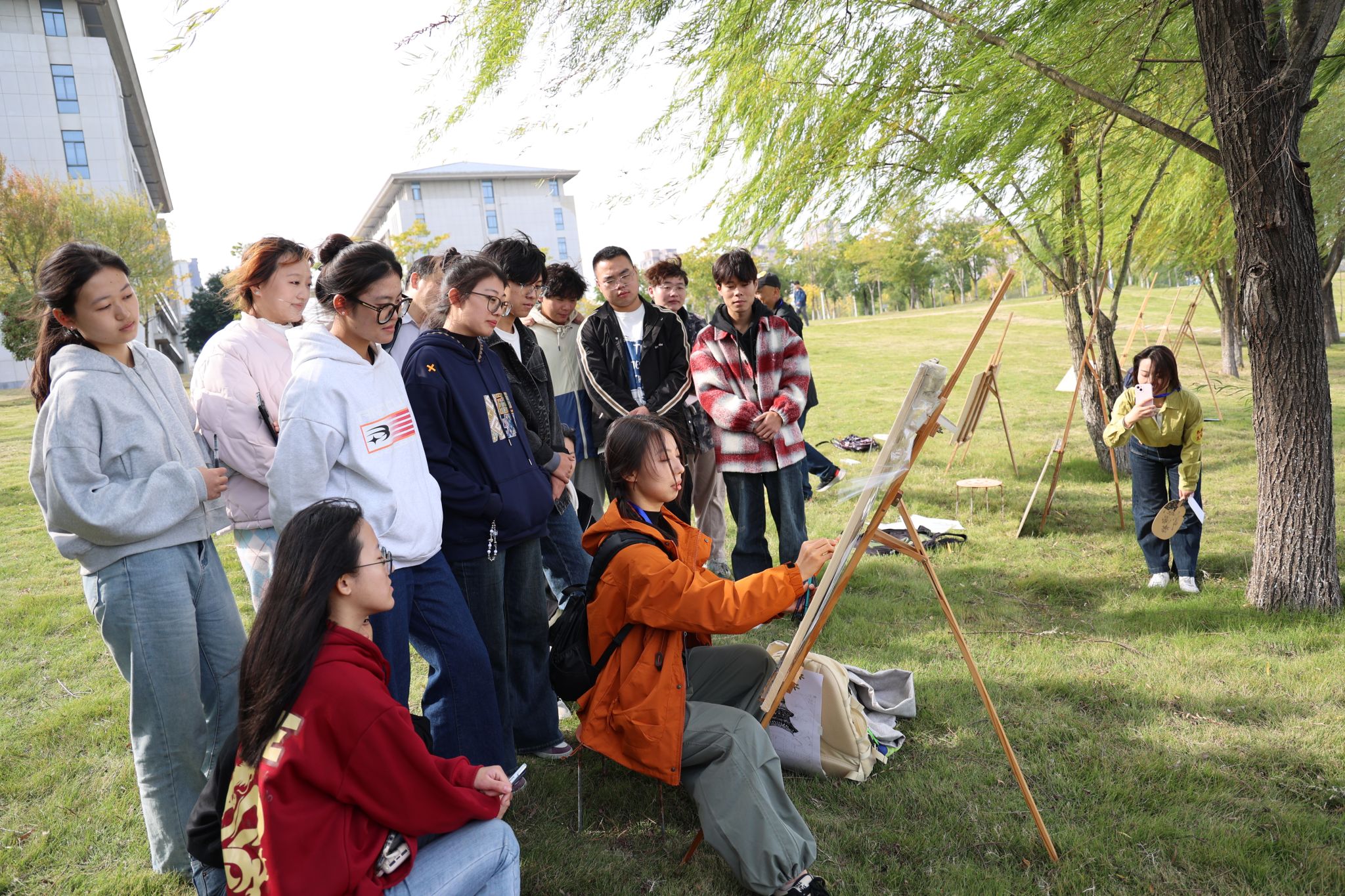 活动期间,安徽省中央新闻单位记者走进校园践行“四力”,与师生开展深入交流,全方位、多角度体验大学的魅力与活力。记者们参观了天文爱好者协会、军事爱好者协会、书画协会、微生物艺术画协会展览,亲身感受大学校园的青春气息。在双龙湖畔,记者们在参观学校公共艺术教育成果展时看到了练习黄梅戏的同学们,同学们身着传统戏服,唱腔悠扬,身段婉转,展现了黄梅戏独特的艺术魅力。记者们和正在写生的同学们围在一起,交流大学生活、观摩写生、观看湖景。现场氛围热烈温馨,记者们纷纷拿起相机记录校园的美好瞬间,这些影像和故事,将会通过他们的笔触与镜头,传递给更多的人,让更多人了解学校的历史底蕴和发展成就。(撰稿:范龙超 学生记者 苏月月 摄影:江伟 学生记者 刘一涵 编辑:范龙超 审核:陈秀)