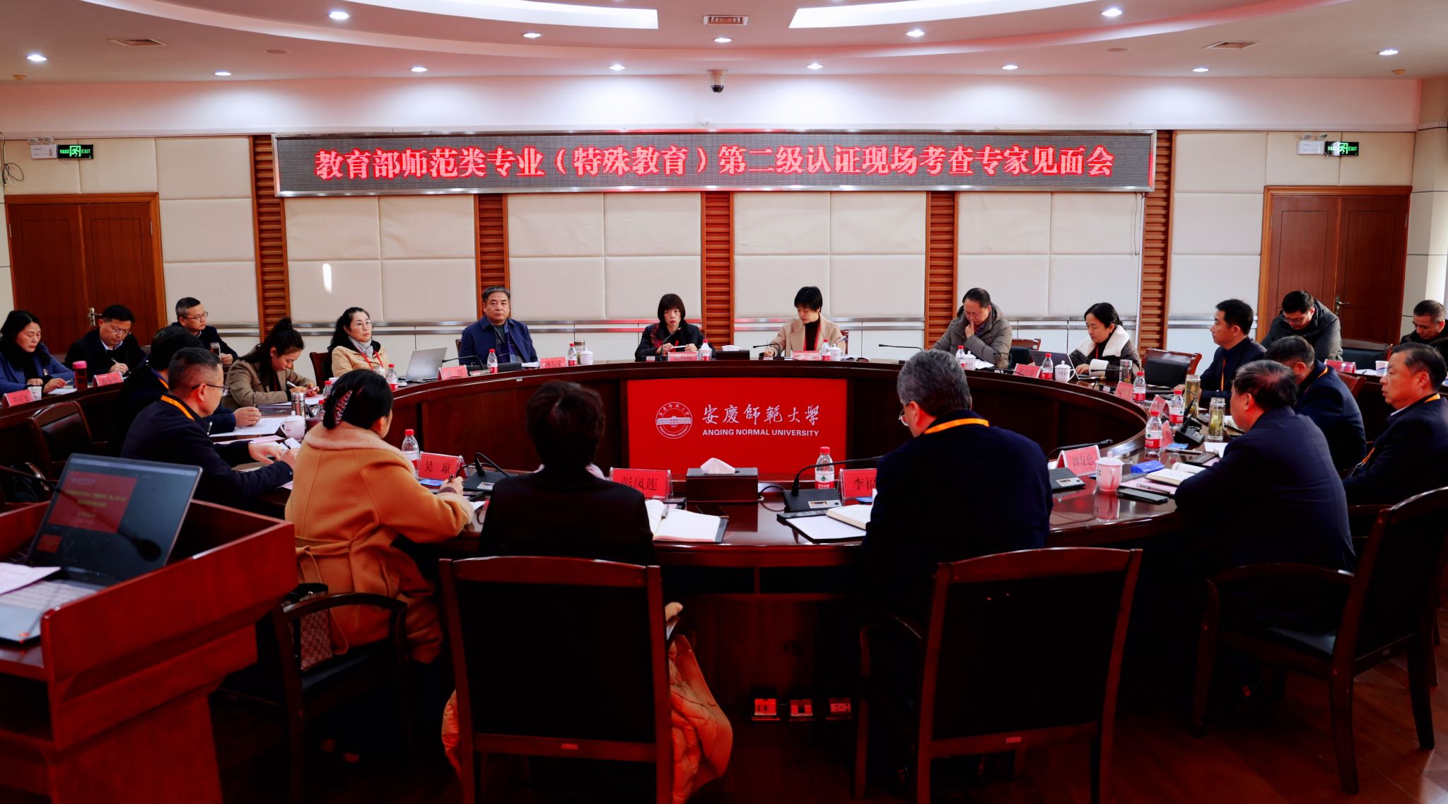 12月15日上午,郑燕林主持召开专家组见面会。专家组全体成员,安徽省教育评估中心负责人,学校党政领导李福华、彭凤莲、刘友忠、吴琼、秦朗、徐晓宁、申传胜、陈秀、张红飞、计裕人等出席会议。安徽省教育评估中心负责人宣读了认证文件并介绍了专家组成员及与会人员,并作相关工作要求说明。