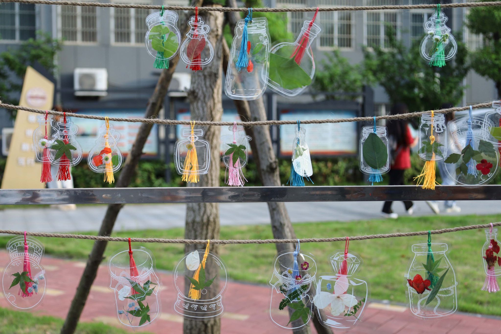 “压花书签”摊位前人头攒动,法学类专业2023(1)班的葛芯怡手持一个植物标本“举棋不定”,在工作人员和周围参与学生的帮助下,她成功将透明书签封口并匹配流苏挂上展示台。“这对我来说是一次全新的体验,在同学们的帮助下,我鼓起勇气去尝试,挑战了自我。”葛芯怡感叹,自己性格非常腼腆,总是害怕犯错,但今天的活动让她看见了与平常不同的自己。