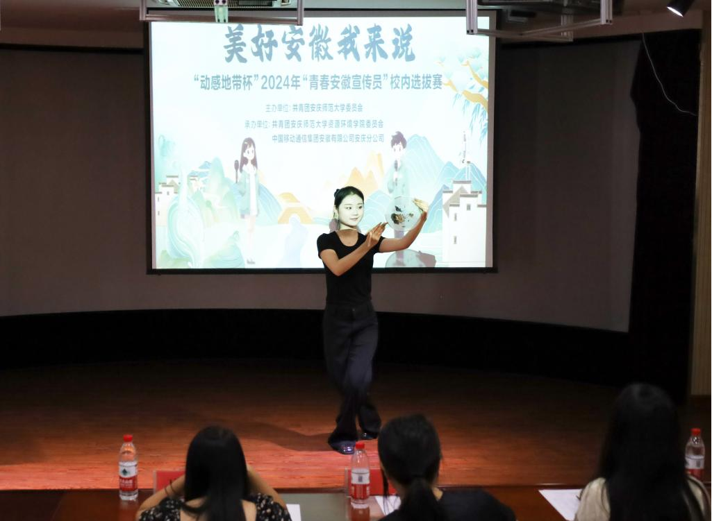 “本次比赛以‘美好安徽我来说’为主题,旨在选拔能够向外宣传‘徽风皖韵’的‘青春安徽宣传员’。”据活动负责人、环境科学专业2022(1)班的高雅悦介绍,选拔过程包含“美好安徽我来说”主题宣讲及展示个人才艺两个环节。