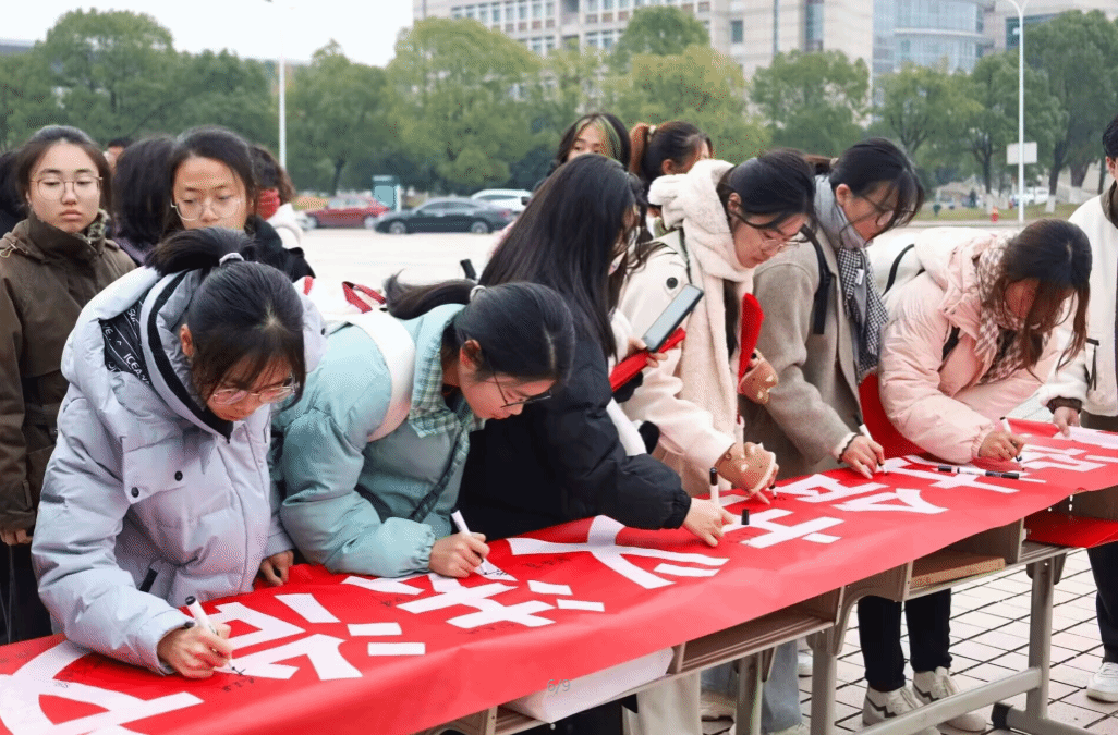12月4日是我国第十个国家宪法日。当天早上,第十个“国家宪法日”宪法晨读宣誓活动在龙山校区敬敷广场举行。现场全体师生右手举拳,郑重宣誓。在场师生在宣誓活动横幅上签名。